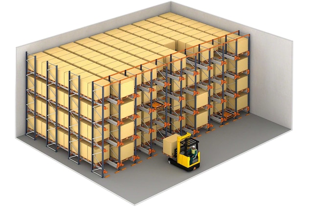 - Unlike standard drive-in systems, items can be grouped by channels, rather than requiring a full lane. Greater product diversification is the result.