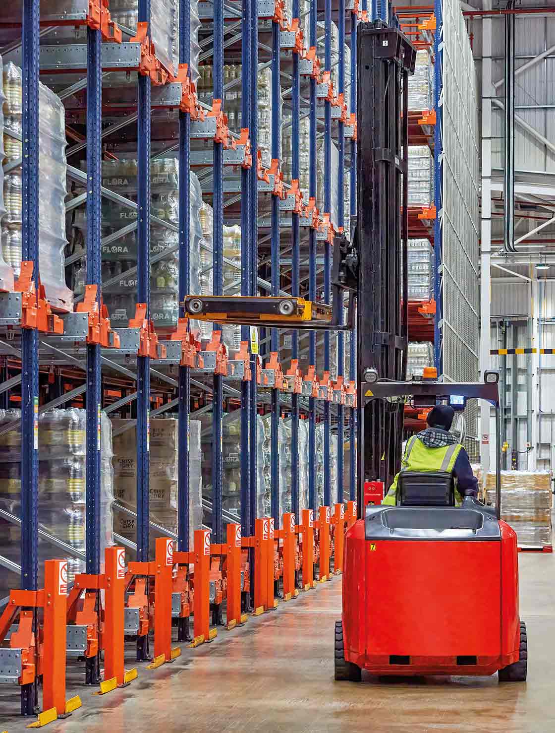 “We handle around 1,000 pallets per day: 500 come from our production lines, and the other 500 are shipped, mainly to UK supermarkets,” says Loft. “Semi-automation gives us greater agility because it allows pallets to be moved automatically, speeding up storage and dispatch operations for bottled oil.”